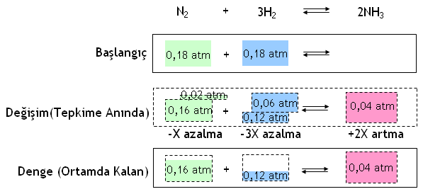 0,06 atm Y kullanıldığını görebilirsiniz. Ancak bu miktarlar ortamda kalan değil,