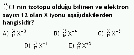 17 , değerliği +5 ve kütlesi 36’dan farklı olan iyon Cl’nin