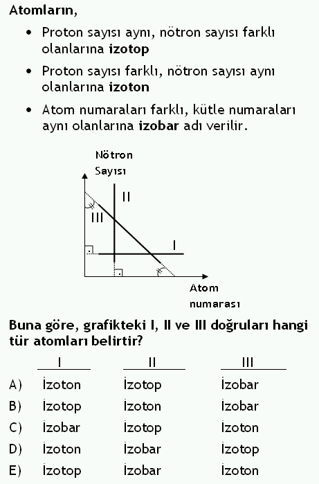 üzerinde III numaralı doğruya dikme çizerseniz, her bir atom numarası için belirli bir nötron