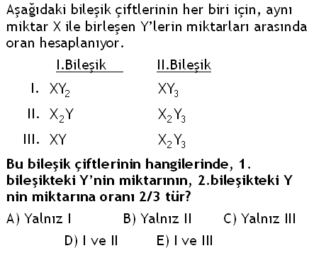Yani I.ve II. bileşiklerde X miktarları aynı olmalı.