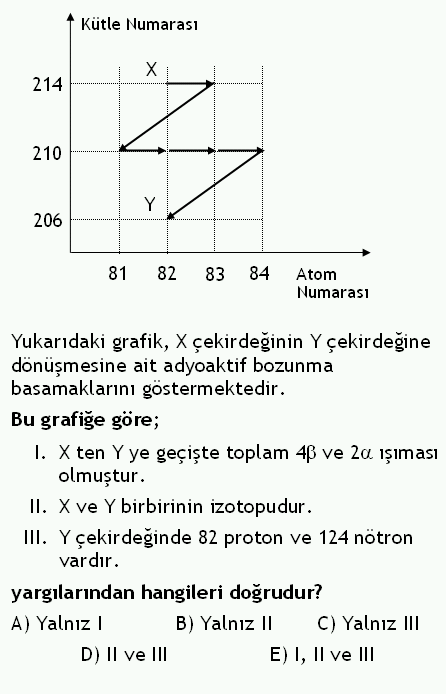 Y çekirdeğine dönüştüğünde sonuçta kütle no değişmiş,